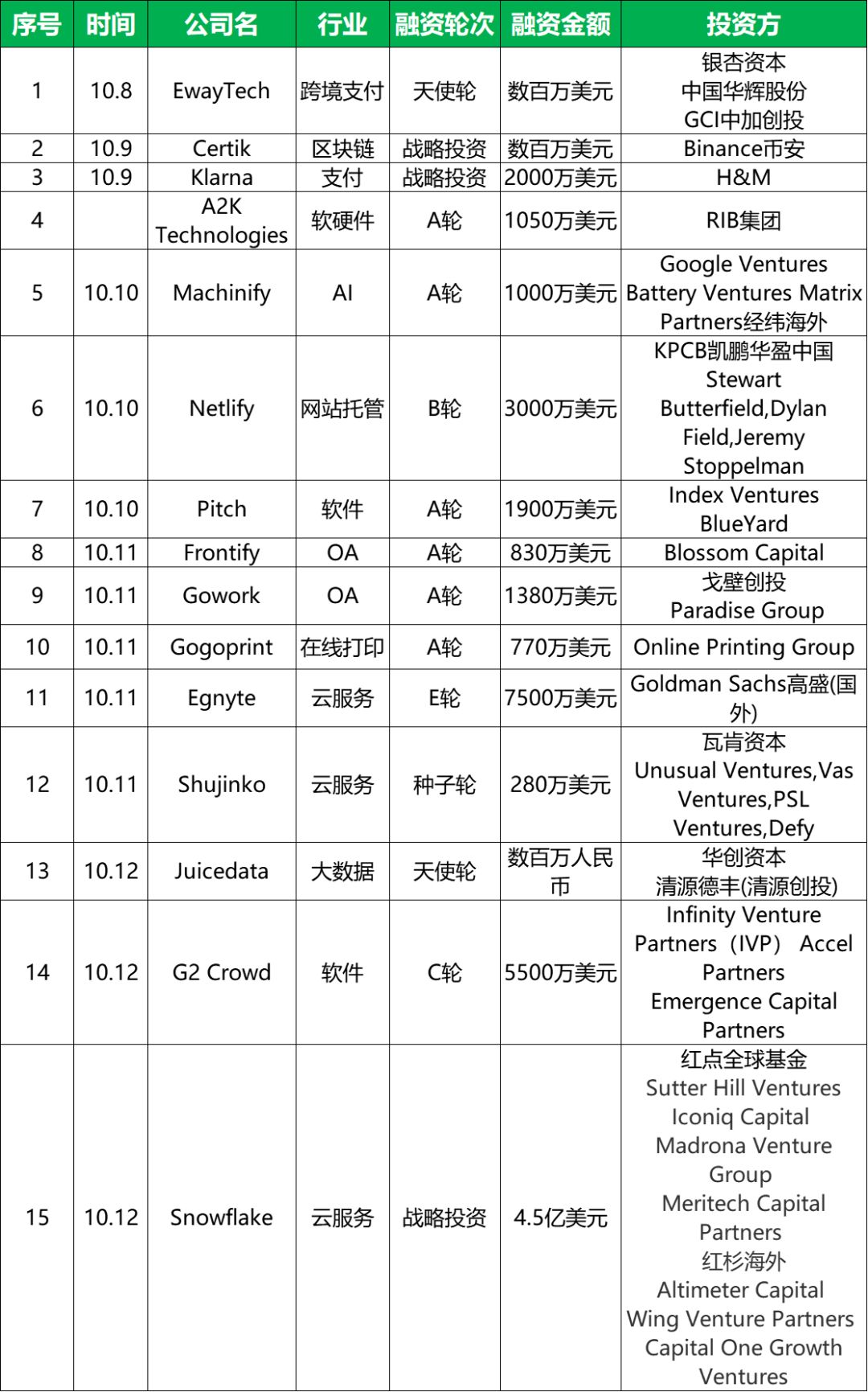 以下为国外企服领域融资汇总