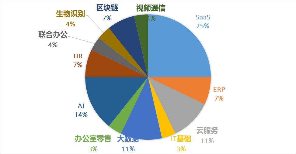 上周国内企服领域共发生28起融资,主要发在12个细分领域,其中SaaS类产品和服务最多,共7起占比25%,代表企业有博卡软件、上上签、一品威客网等,其次在AI、大数据领域分别有4起和3起融资,分别占比14%和11%。