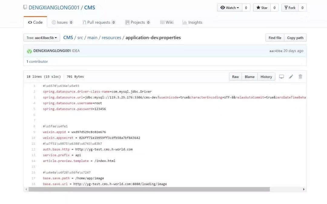 而从爆料的截图中我们可以发现,“username = root,password = 123456”,该用户名和密码如此简单,如果是真的,那程序员的心该有多大?(目前,该 GitHub 账号下的库已全部删除。)