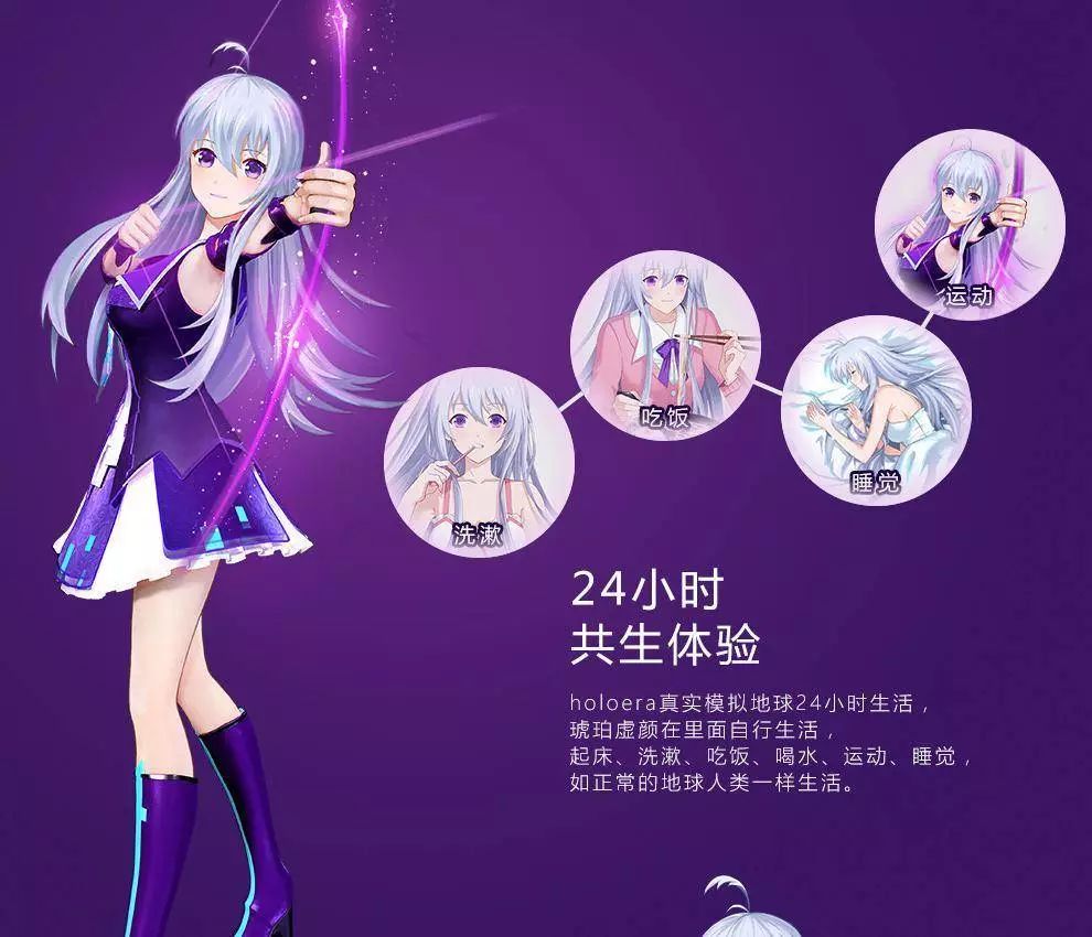 2016年7月,Gowild发布了一个全新的虚拟生命——琥珀·虚颜。随后在去年正式发售了HoloEra(HE),琥珀通过3D全息投影技术从二次元来到了三维世界,居住在HE中心位置,在这里“生活、训练”以及完成用户交给她任务并与之互动。