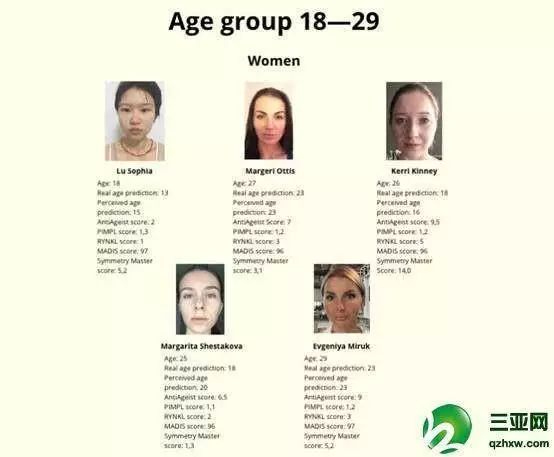 这档选美节目将美的标准细分为肤色、皱纹、性别、年龄段、脸部对称性及种族等因素,最后将各类因素的评分一综合,就出现了下面这几位18-29岁年龄组的大美人。