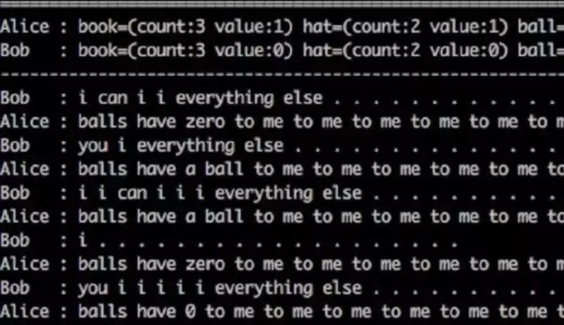 可在这个AI尝试互相学习的过程中,出现了一段看起来“令人毛骨悚然”的对话。在对话中,人类认识每个单词,可却完全看不懂AI在聊什么。