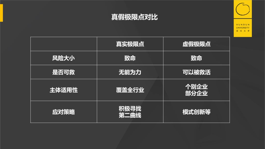 我们提出一个新的概念:一个企业家、创业者,遭遇到业绩增长乏力,迟迟不能突破,甚至整个行业出现下滑的时候,你要判断这是真实极限点还是虚假极限点。
