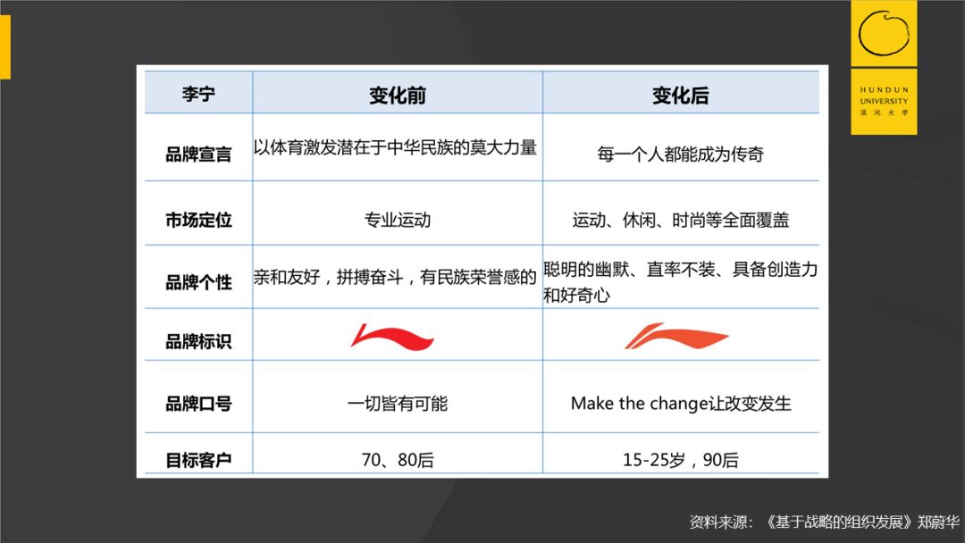 李宁进行了改革,进行了品牌重塑。它把这次遇到的业绩滑坡当成了真实的极限点,所以它开始寻求第二曲线,走国际化路线。后来,李宁改变了自己的LOGO,“一切皆有可能”变成了“Make The Change”,它开始从专业运动转向运动休闲的全市场覆盖。其实,李宁做的品牌重塑,我们没有办法说它做对了还是做错了。但是放到当时的环境里,基于传统的批发渠道模式,李宁的一系列变化,市场给出了一个非常负面的评价。后来,大家看到,李宁品牌塑造之后业绩下滑、营业额下滑,在2012年,整个业绩出现了巨额的亏损。