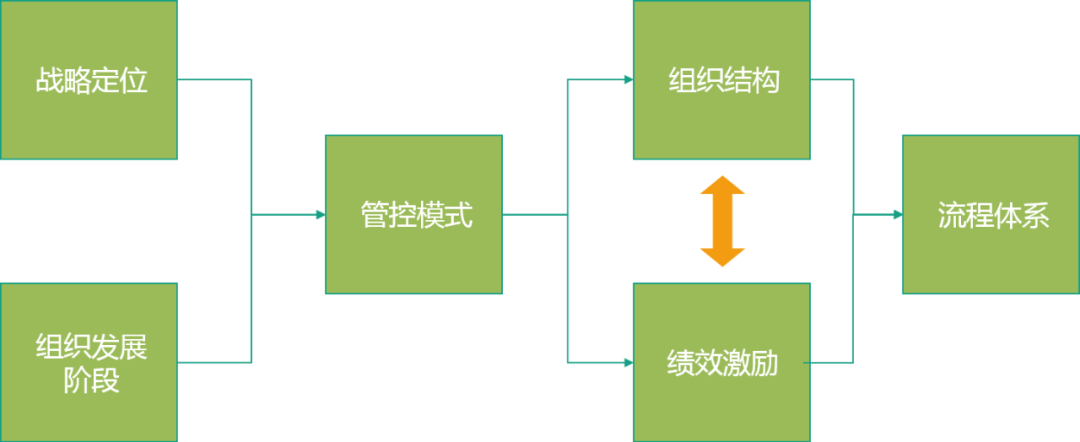 在企业开展新业务时,首先要结合自身的战略地位,和组织发展阶段,思考目标是什么,目前的段位是什么样的,基于这两点,定义出最基本的管控模式,从而才能进一步延伸出承载战略目标和管控模式落地的组织结构以及绩效激励体系,这两者相辅相成。基于所有这些顶层设计,最后才是业务开展具体的流程体系。