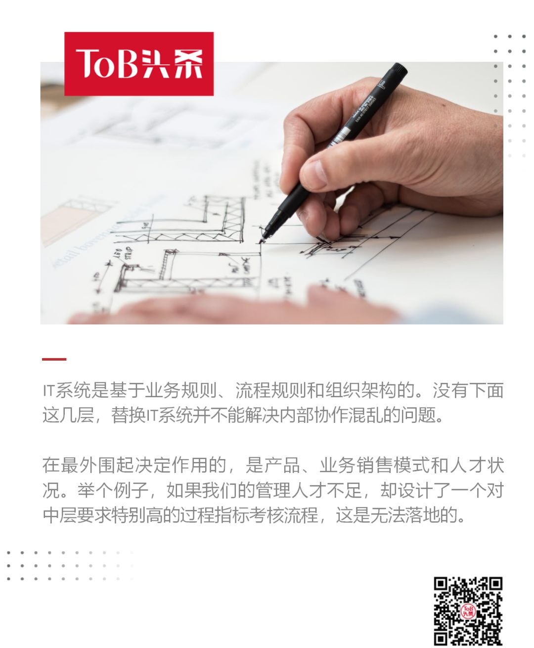 IT系统是基于业务规则、流程规则和组织架构的。没有下面这几层,替换IT系统并不能解决内部协作混乱的问题。下面我就一层层讲讲。