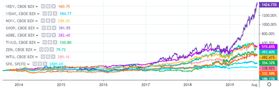 随着Slack、Zoom的上市,RPA概念的大热,2019年美国的企业服务市场成为投资圈关注的热点。但是被很多人所忽视的是,企业服务云化是过去5年美股整体的巨大红利,其中以ServiceNow、Veeva、Shopify等为代表的股票纷纷走出了超级大牛股的走势,成为二级市场的绝对热点,让一二级市场的投资人赚的盆满钵满。