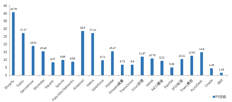 绝大部分企业服务公司PS值集中在8-30之间。通常增速越快,PS值越高。PS高一般有四种原因:一是高于其他企业的历史增速,如果年均40%,PS超过15倍,年均70%,超过25倍(对比腾讯的年复合增长率39%,PS约为9.4倍);二是企业是否盈利;三是市场稀缺性及龙头效应;四是纯资金面及情绪影响,例如流通股占比大小。绝大部分SaaS公司正处于高速扩张和增长阶段,合理的亏损有利于公司保持市场领先地位,随着规模的扩大,研发费用、管理费用在公司整体费用中所占的比例将会下降,云服务高毛利、边际成本低的优势将得到体现。最后,所有成熟的云化企业服务公司的成本结构都将趋近于Salesforce-最为成功和规模最大的SaaS公司,它是所有SaaS公司的最佳模版。- AutoDesk在亏损,同时复合增长率不高的情况下为什么有接近15倍的PS?