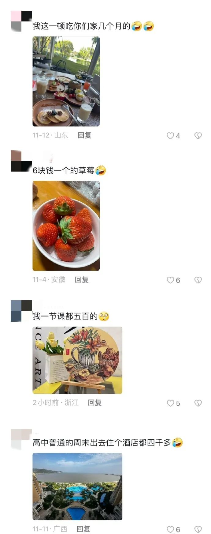 而更多人,则在评论区里晒出,自己司空见惯的优越生活: