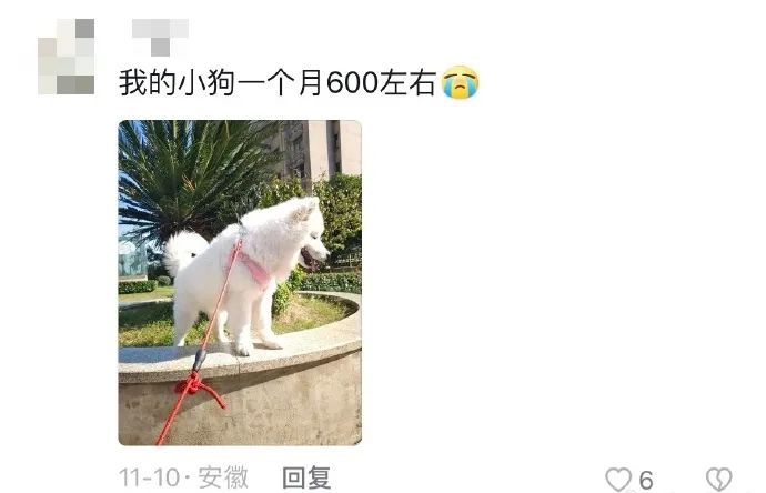 甚至有人拿自己家的宠物作对比:“我的小狗一个月600左右”。