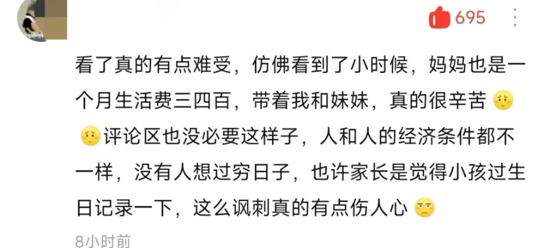 也许家长是觉得小孩子过生日记录一下,这么讽刺真的有点伤人心。”