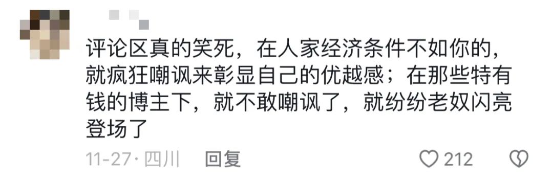 在哪些特有钱的博主下,就不敢嘲讽了,纷纷老奴闪亮登场。”