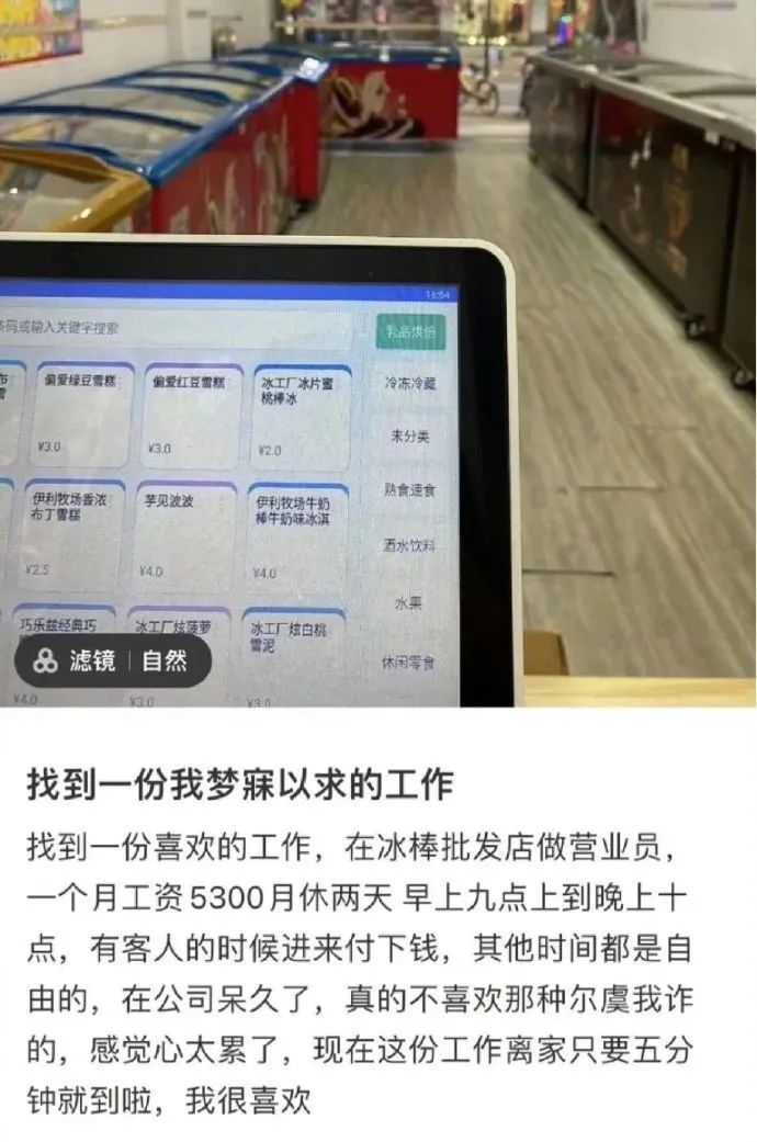 有这样一则帖子,就是发帖人说自己终于找到了一份梦寐以求的工作,在冰棒批发店做营业员。