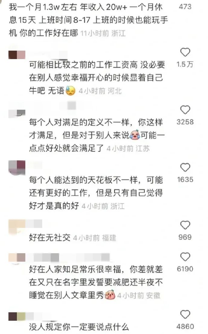 一个月休息15天,上班时间8-17,上班的时候也能玩手机,你的工作好在哪里?”