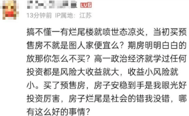 “活该,谁叫他们没有金融知识,经济条件这么差还敢买房。”