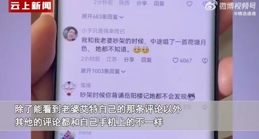 意外地发现,老婆也刷到了这条视频,而评论区却完全是站女人的。