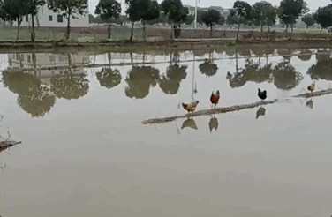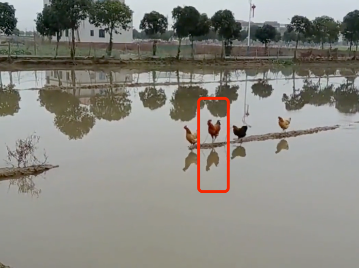 鸡们必须越过这片水域,才能到岸上去。