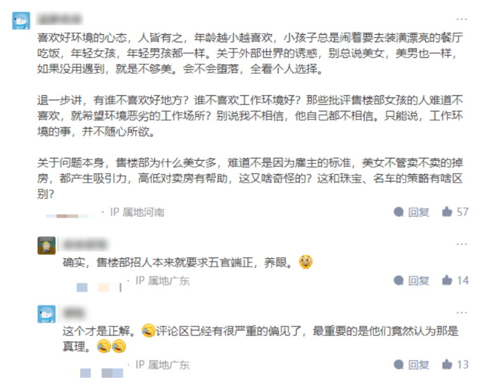 “不要带着有色眼光去看售楼处的漂亮女生,不要用个例来代表全部。”