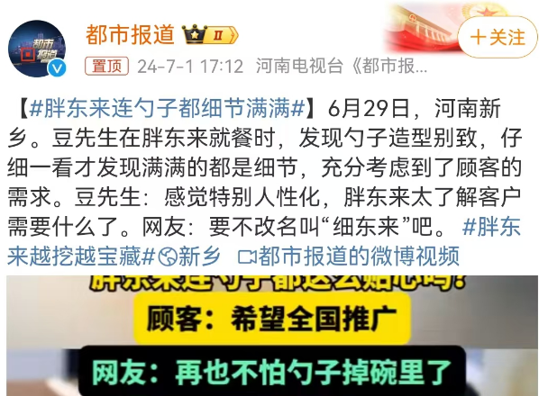 镜头拉大后,才发现原来网友想夸胖东来勺子设计很贴心。
