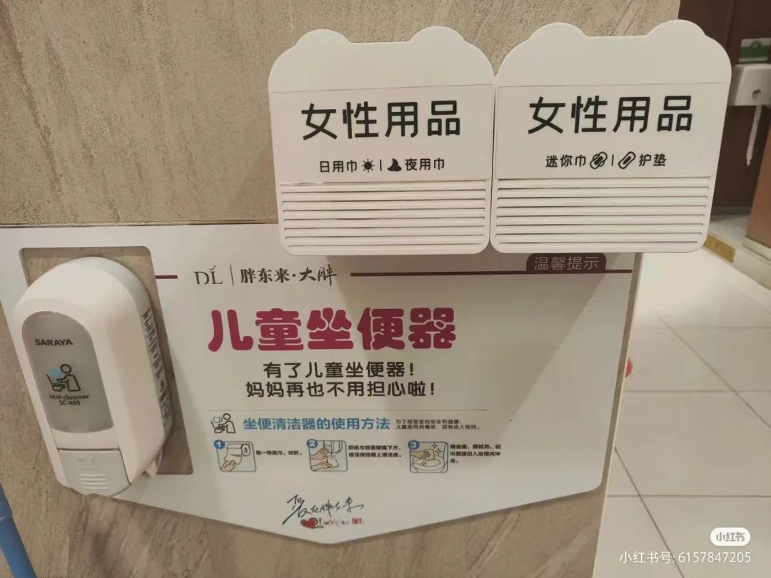 就像胖东来的厕所提供女性卫生用品,细分日用、夜用,迷你巾和护垫,将“女性友好”一下子具象化。