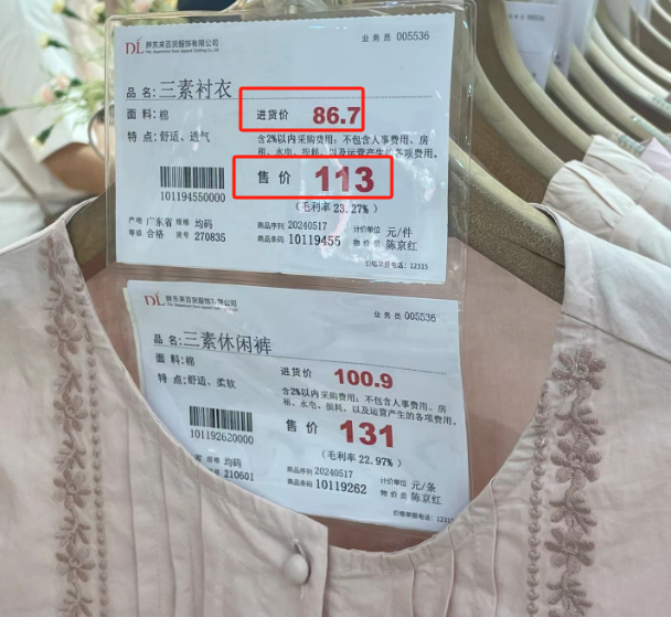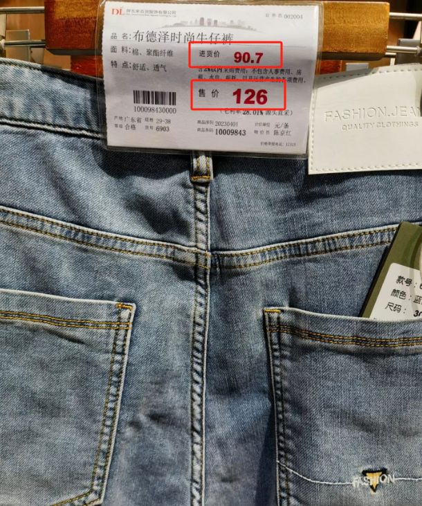 哪怕是一条牛仔裤一件衬衣,胖东来都会标记上进货价和售价,以及毛利率。