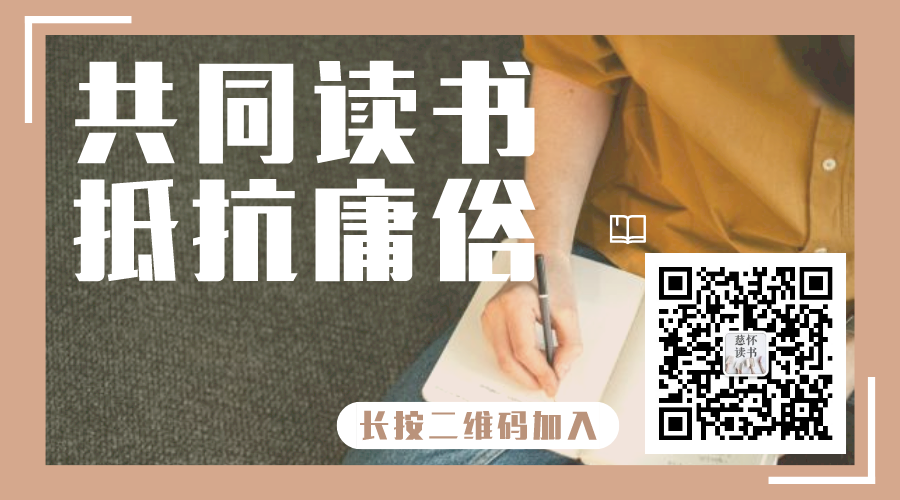 时间有限,我们只读经典。您每天抽出十分钟的时间,即可领悟一本好书精华。陪你一年读懂365本书,更有犀利精彩的观点输出,帮助你养成阅读和思考的习惯!关注公众号慈怀读书后,公众号聊天页面回复“书单”领取十本经典好书解读,让我们一起在经典名著中,找到提升自己的道路。