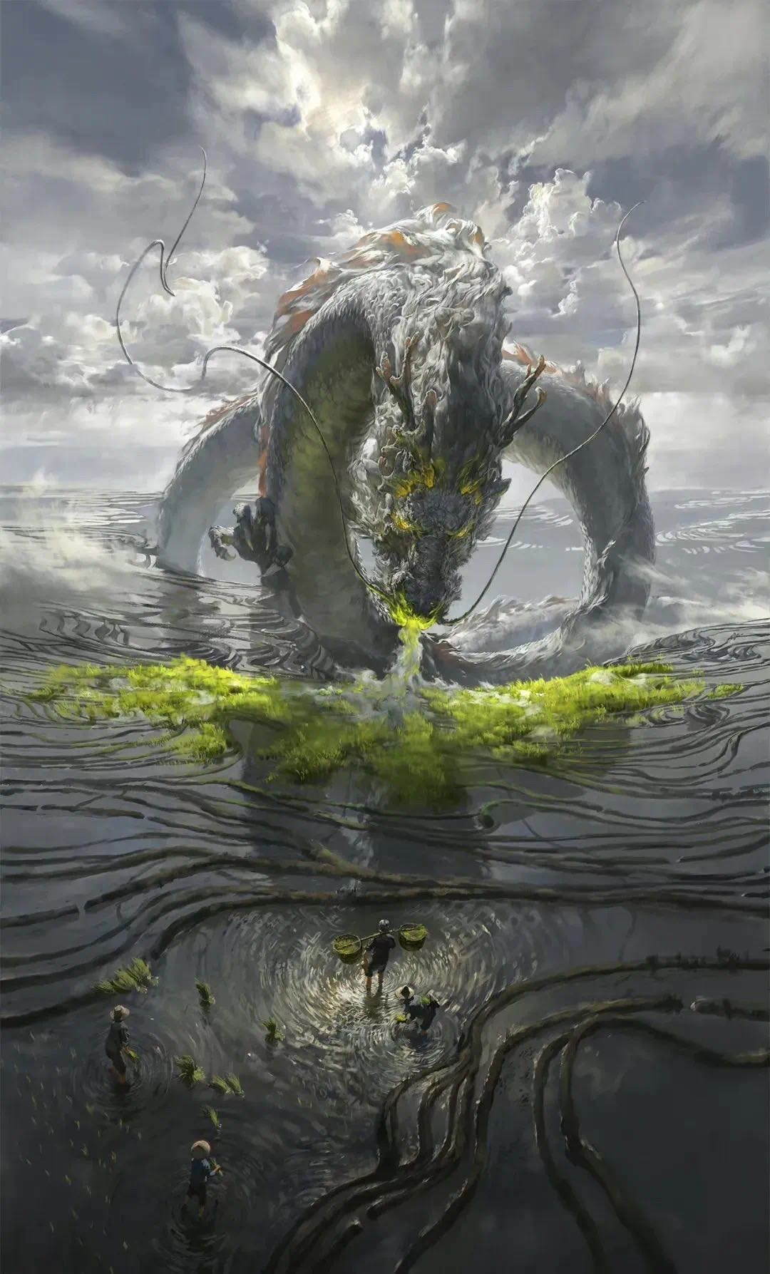 也就在这一刻,一条山川雨雾中的龙腾飞于脑中。