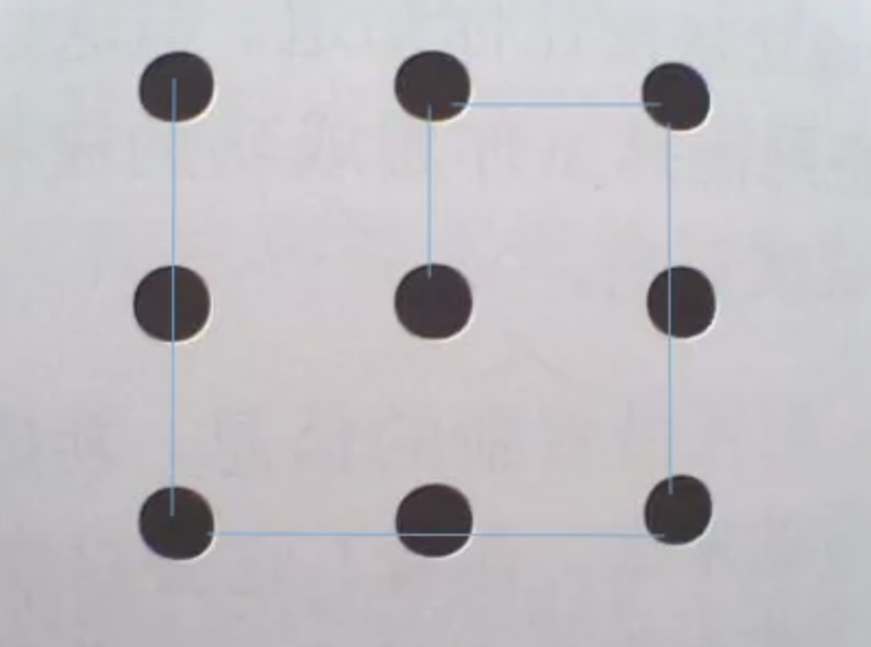 连接下图中的9个点,最多只能用4条直线,而且过程中笔不能离开纸张。