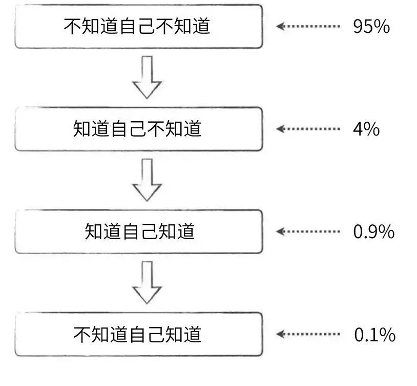 现实生活中,很多人都处于第一层“不知道自己不知道”的无知无畏状态里。