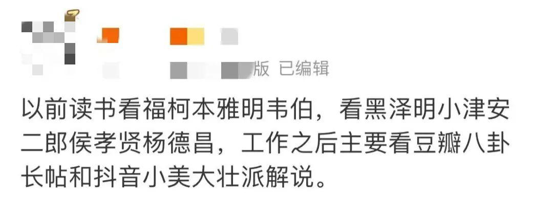 “以前读书看福柯本雅明韦伯,看黑泽明小津安二郎侯孝贤杨德昌。
