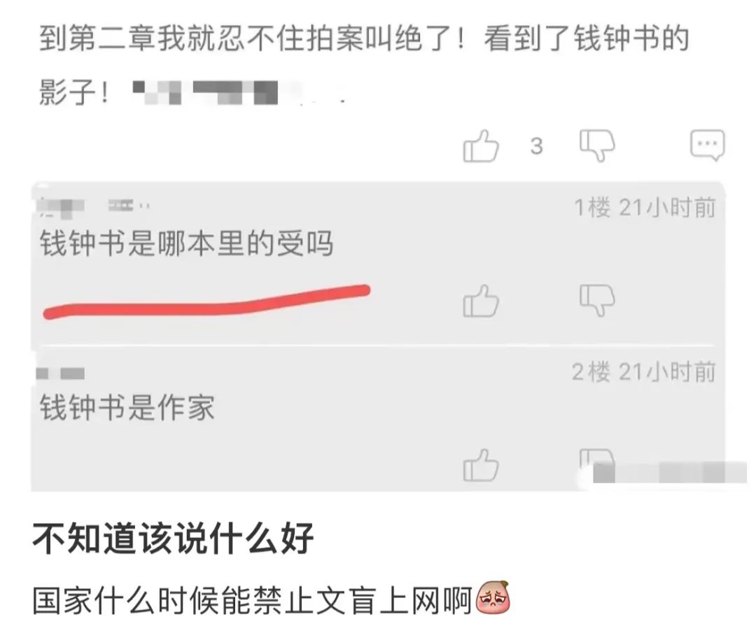 底下却有人回复:“钱钟书是哪本里的受吗?”