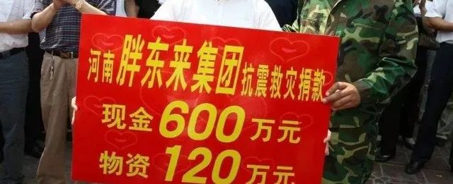 2008年汶川地震,胖东来先后捐款、捐物达750万元,并组织了一支160人的救援队,在第一时间赶往灾区支援。