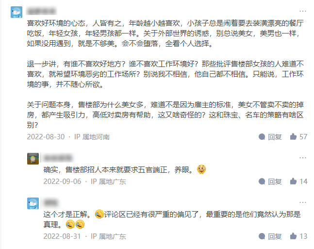 “不要带着有色眼光去看售楼处的漂亮女生,不要用个例来代表全部。”