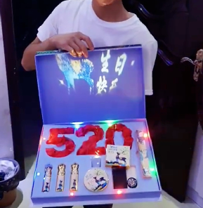 男主人公在情人节当天,为老婆精心准备了一份礼盒。