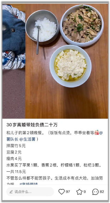 尽管每个月的预算只有600元,但她用心记录着一日三餐,尽量做好营养搭配。