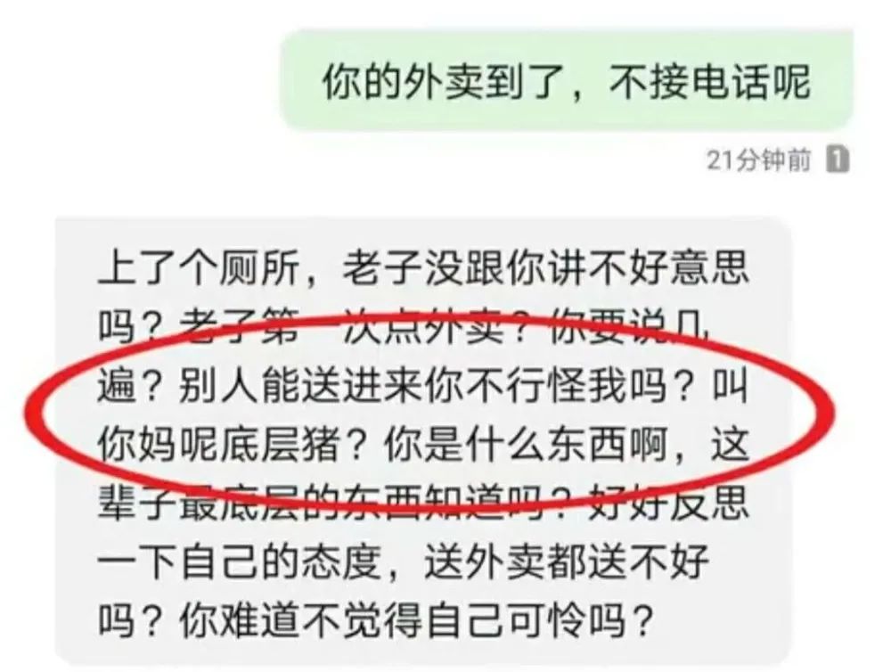 就像那些羞辱外卖员、服务员、清洁工的一个个。