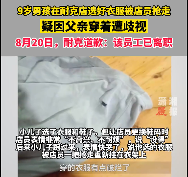 店员却一把抢过他们刚刚挑好的衣服,像是嫌弃被弄脏了一般。