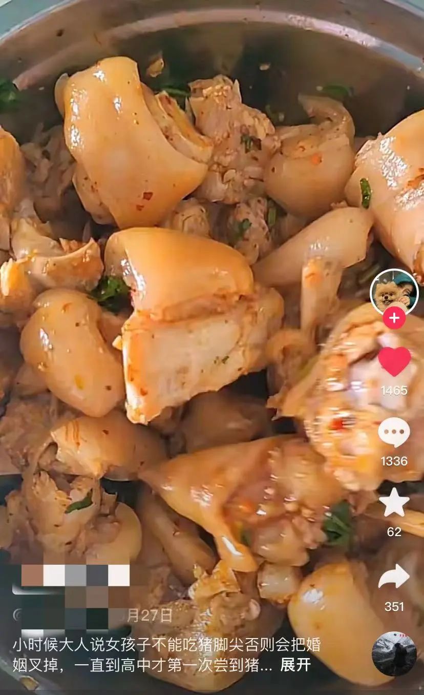 “女孩不能吃猪脚尖,吃了会叉掉她以后的婚姻”;