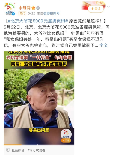 但当被问到男保姆与女保姆之间的区别时,大爷的回答堪称一针见血: