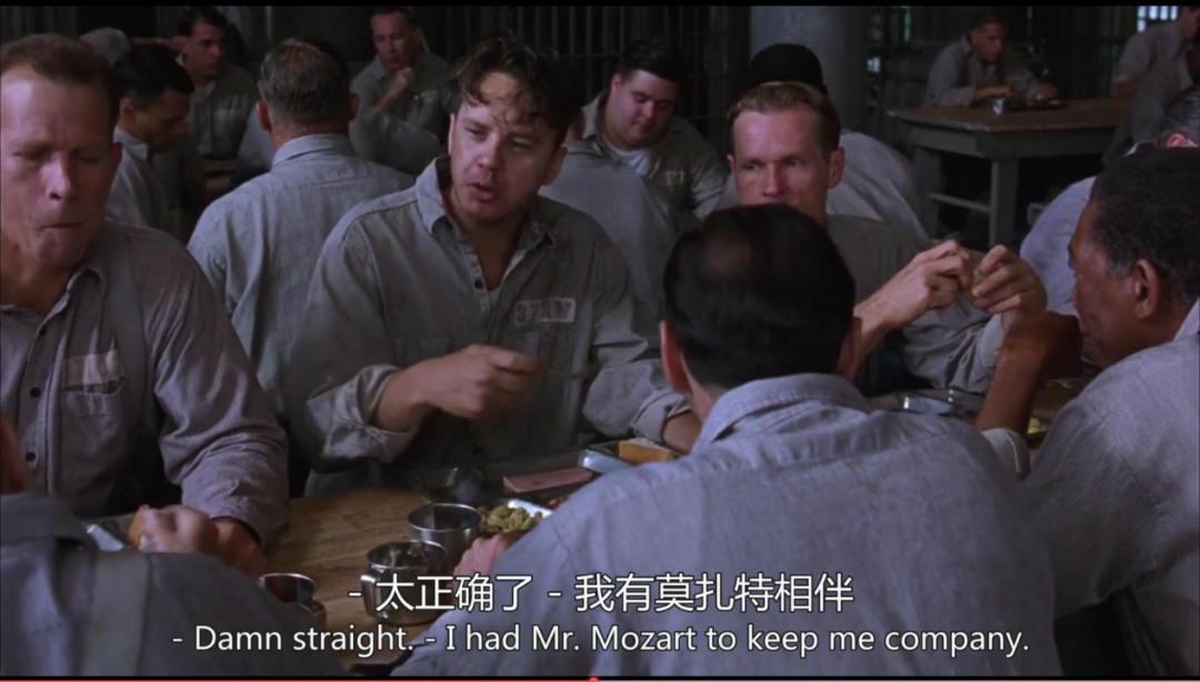安迪跟众狱友解释道,因为有莫扎克相伴,音乐在心中,在脑中,那是天籁之音,那是夺不走的宝贝。