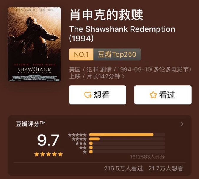自1994年弗兰克· 德拉特将它搬上荧幕,26年后它仍是人们心中的难以超越,霸占豆瓣电影Top250的第一名。