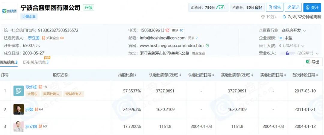 到了7月,控股股东合盛集团及罗立国家族,更以九折价格,向散户肖秀艮转让了公司5.08%股权,套现26.34亿元。