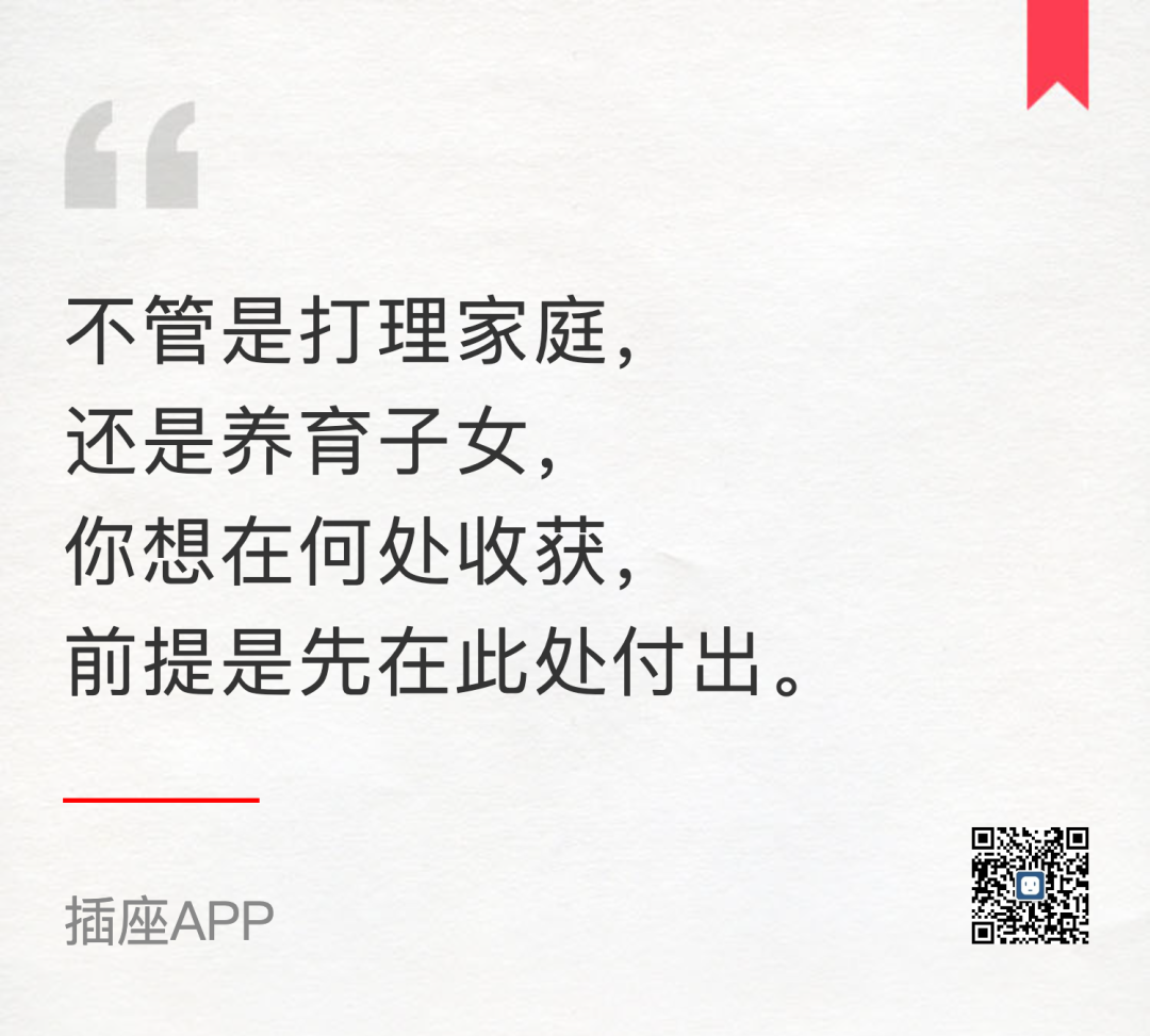 不管是打理家庭,还是养育子女,你想在何处收获,前提是先在此处付出。
