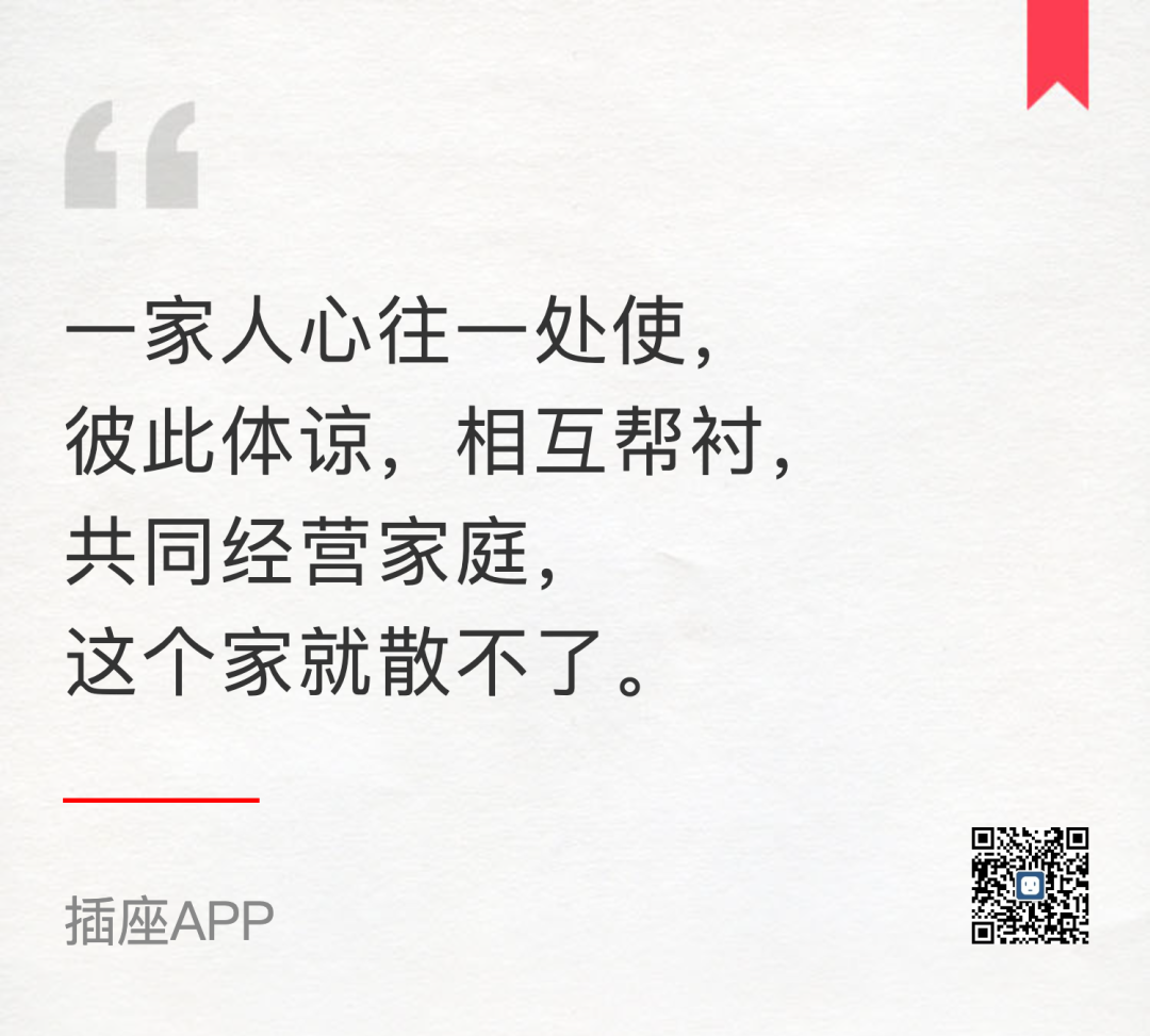 一家人心往一处使,彼此体谅,相互帮衬,共同经营家庭,这个家就散不了。