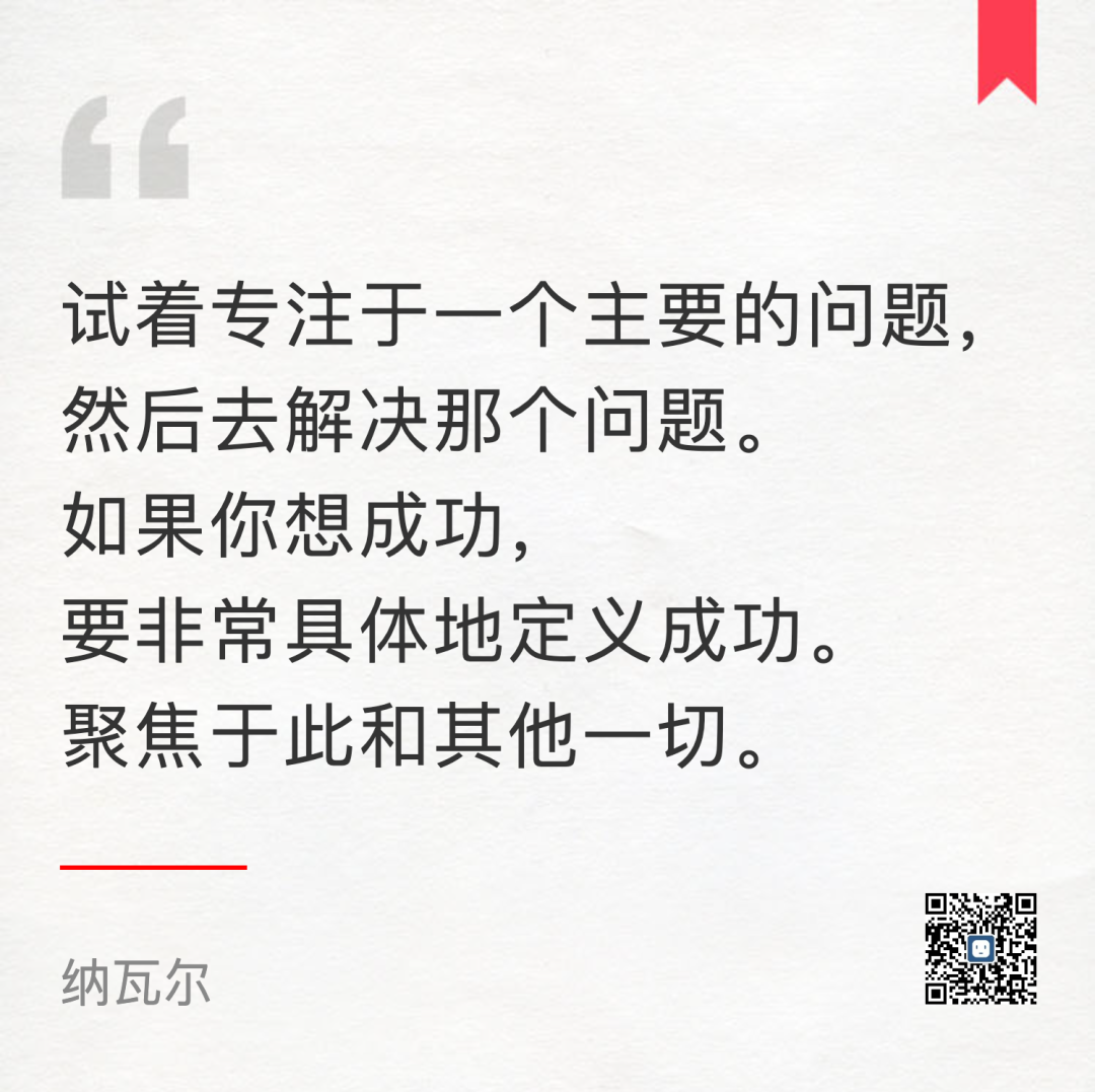 我再说一次,试着专注于一个主要的问题,然后去解决那个问题。如果你想成功,要非常具体地定义成功。聚焦于此和其他一切。