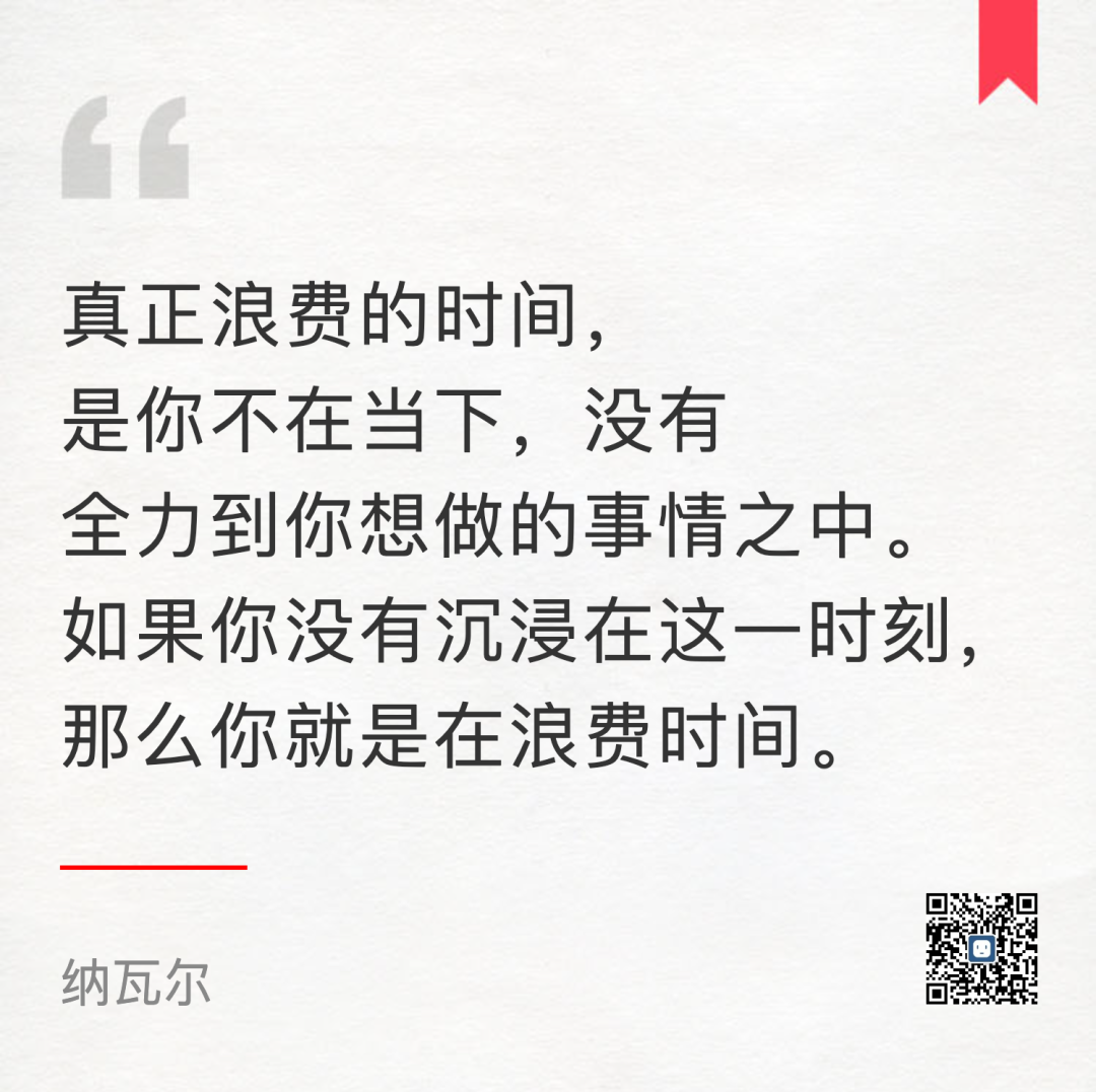 真正浪费的时间,是你不在当下,没有全力到你想做的事情之中。如果你没有沉浸在这一时刻,那么你就是在浪费时间。