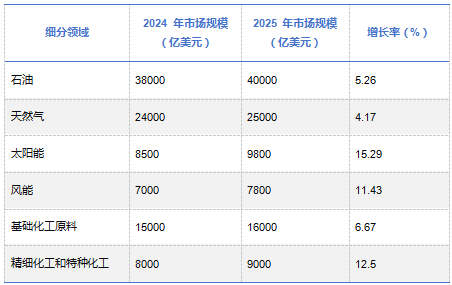 表1: 2024-2025年能源化工行业细分领域市场规模对比