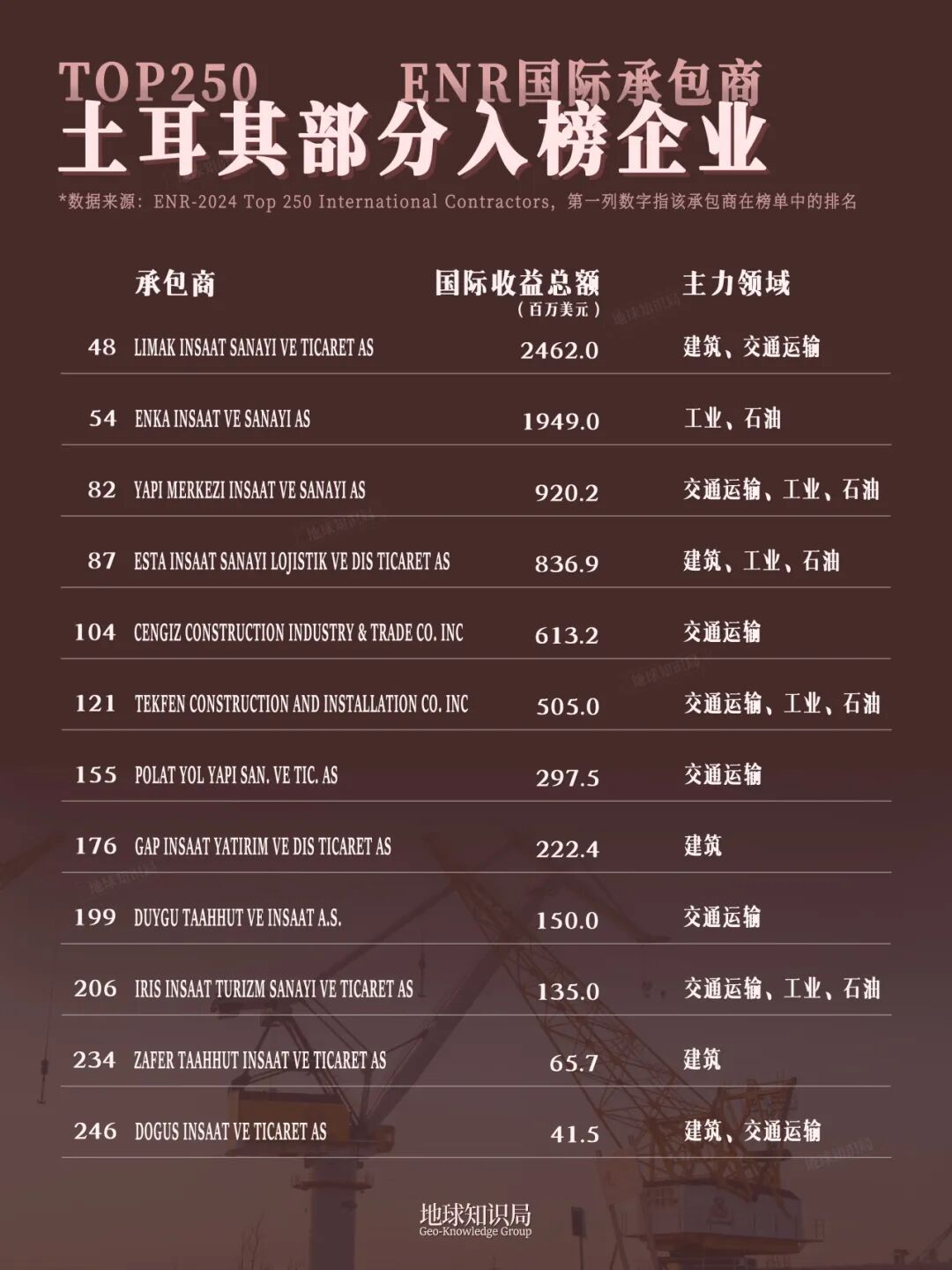 由此可见,在海外工程营收市场中,土耳其和中国处境类似。所谓的“基建狂魔”,只不过是卖苦力喝汤的角色。