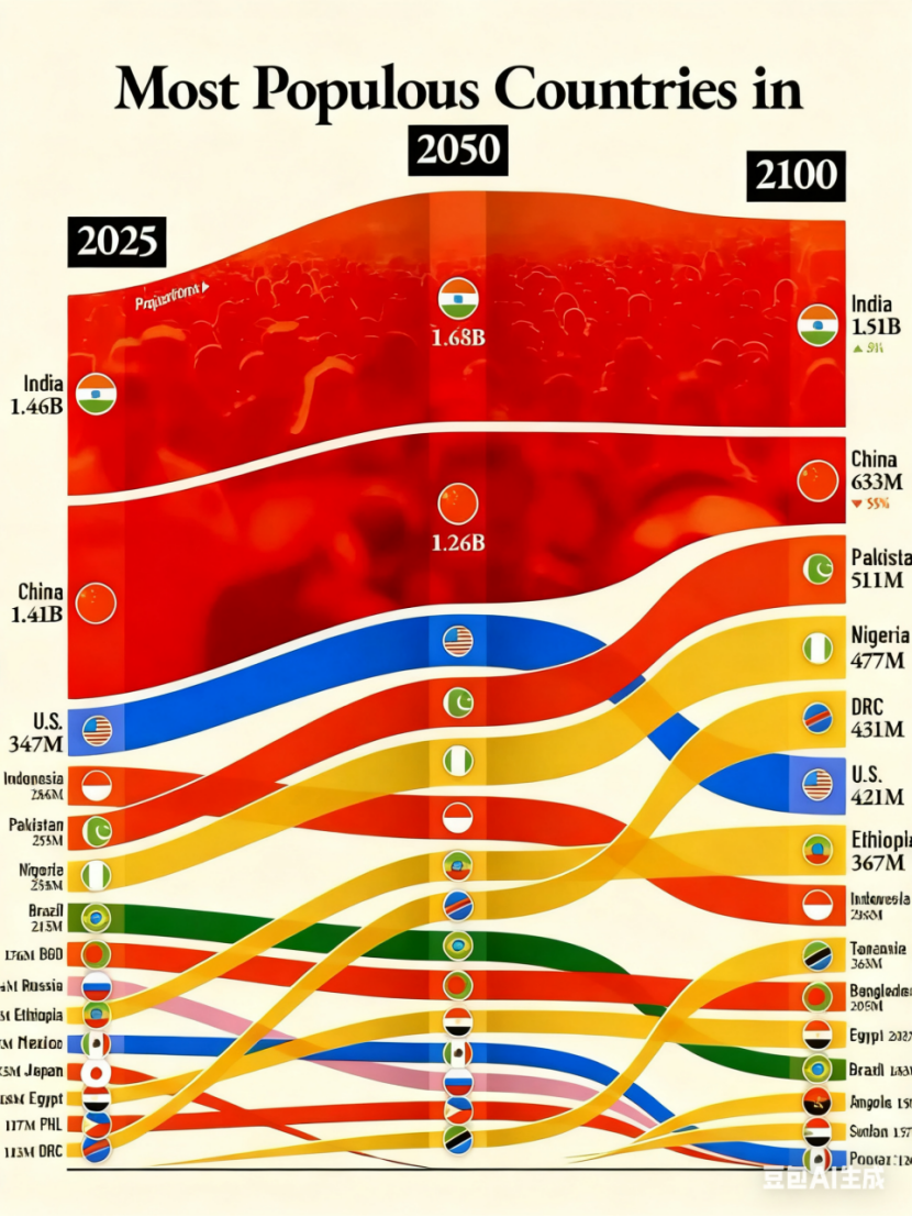 预计到2050年左右才达到人口峰值16.8亿,到世纪末依然将维持在15亿以上的人口。