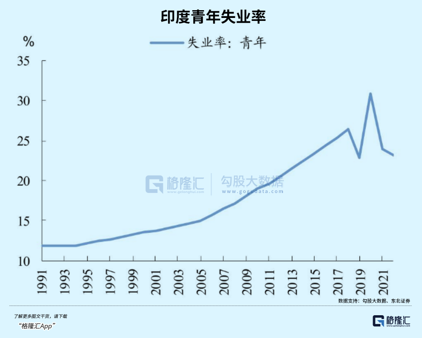 尤其是青年人口失业率,近些年长期维持在25%以上。